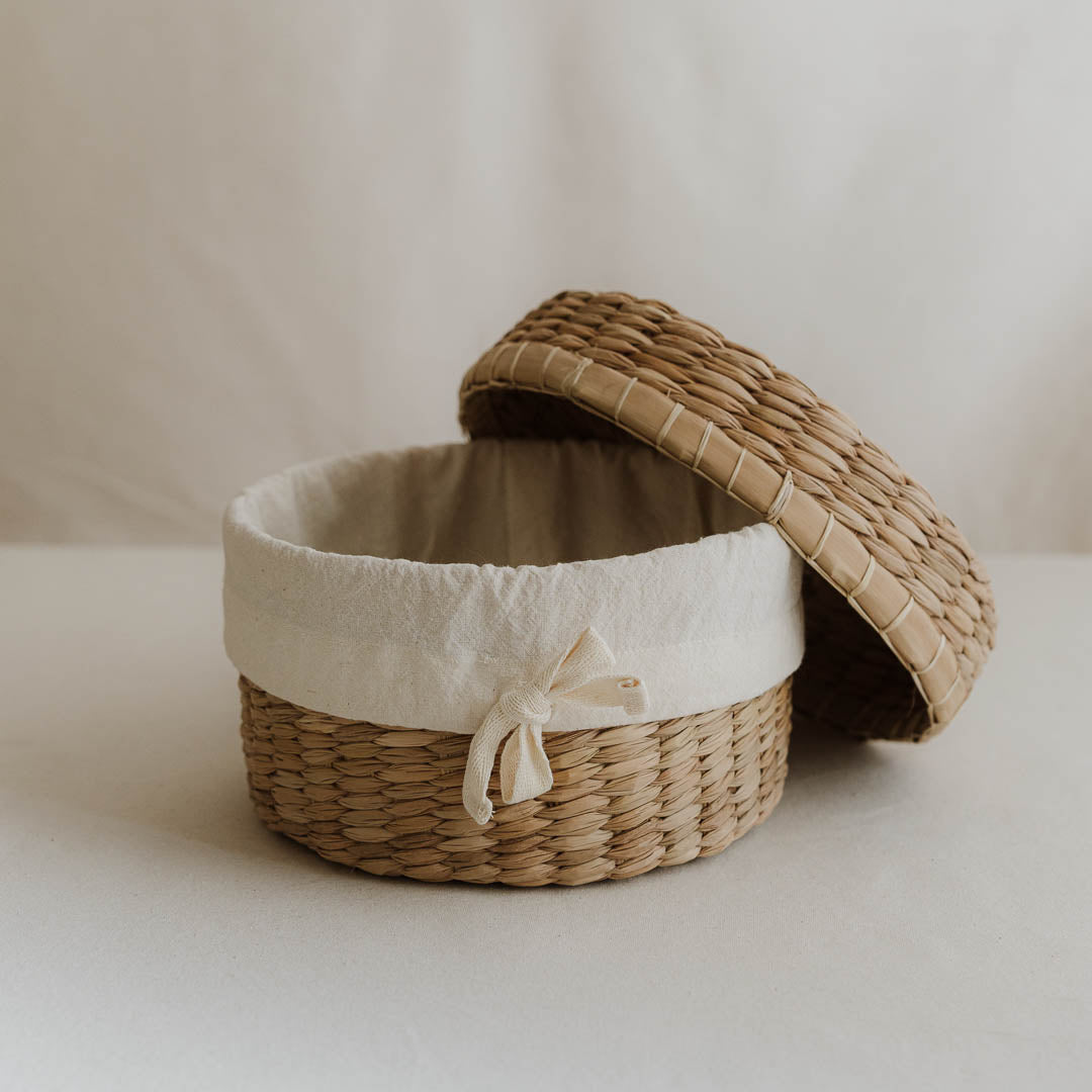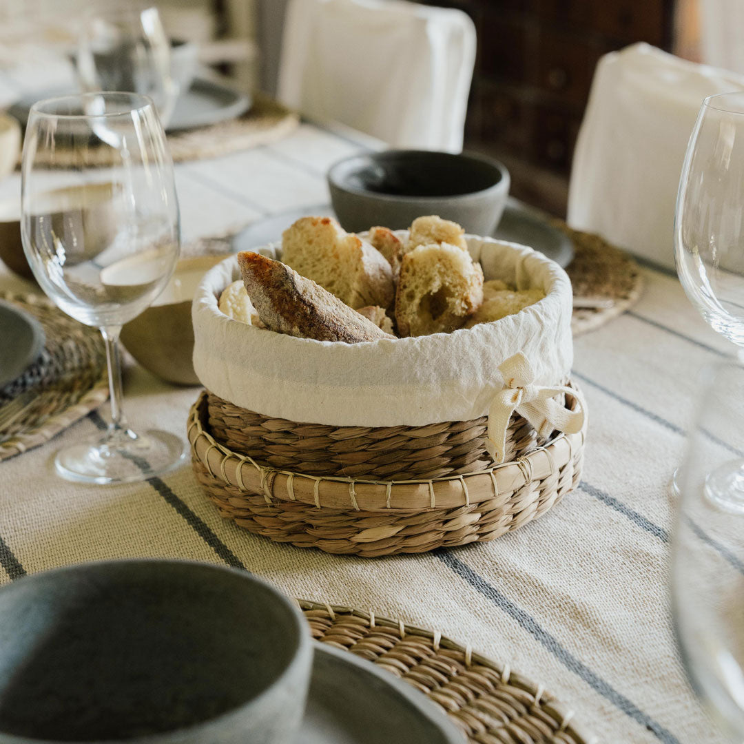 Materiales: Fibra de palma de enea y tela de algodón